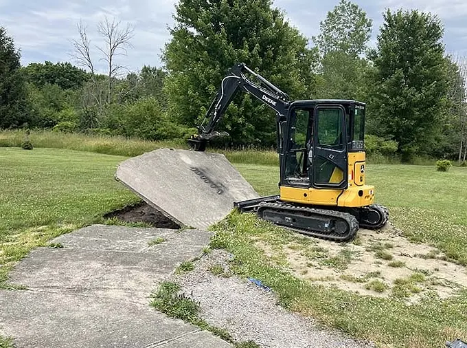 Concrete and asphalt removal in Livingston County — driveways, walkways, patios, and pool demolition with haul away and site grading included.